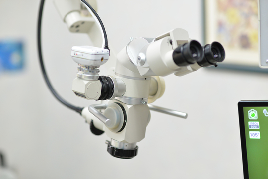 肉眼で見えない部分まで見える、手術用の顕微鏡です。